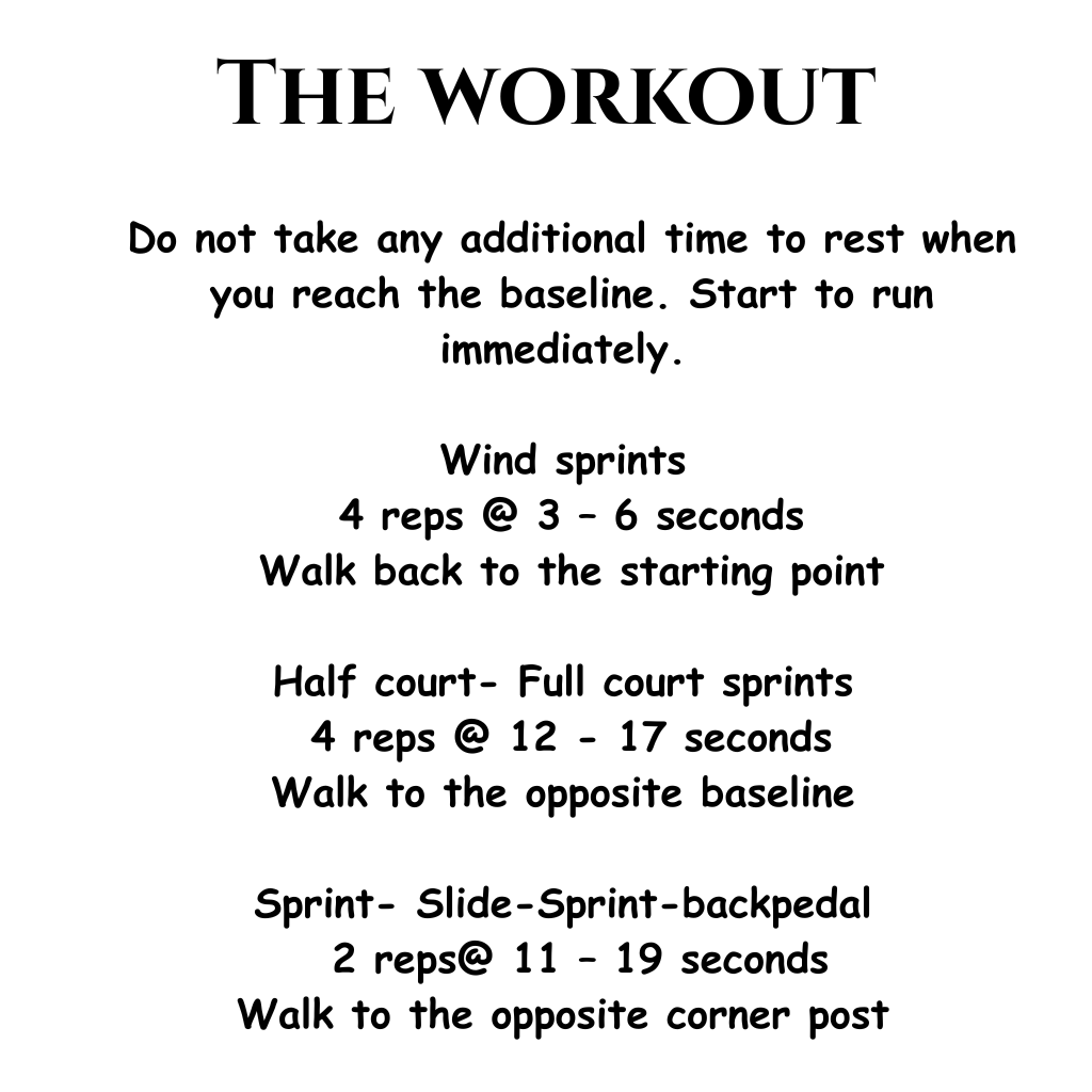 Half court/ Full court sprints 4 reps @ 10- 17 seconds